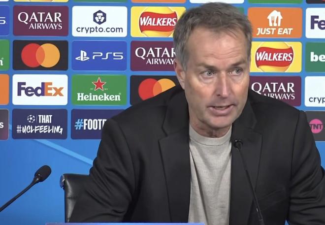 尤尔曼德: “基本上就像我刚才提到的那样,但我尤其为球队展现出的精神面貌感到自豪。我认为我们一直在不断学习。你之前问我,我们从对巴黎圣日耳曼和拜仁的比赛中学到了什么——那两场比赛,我们过于被动,没有踢出自己的风格。而今晚,我们展示了真正想踢的足球哲学。无论对手是谁,我们都必须坚持自己的风格。当然,比赛中一定会遇到困难,我们面对的是欧洲最强的球队之一。但最终,我们要尽可能在比赛中贯彻自己的理念。在控球时,我希望所有球员都能参与其中。我觉得今晚我们做到了,并且展现出了非常大的勇气。这场比赛是一个值得铭记的夜晚,也希望它能让我们更加明确未来的方向,这将成为球队继续成长的动力。我们还有很多可以学习和提升的地方。我相信这支球队潜力巨大,而今晚他们展现出的个性和勇气令我非常、非常高兴。”