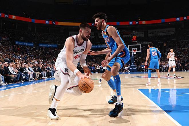 本场比赛中,快船的先发中锋伊维察-祖巴茨(Ivica Zubac)的表现令人大跌眼镜。祖巴茨全场出场31分41秒,投篮7中3,罚球6中5,仅得到了11分11篮板3助攻2盖帽的数据,其中还包括了3个前场篮板,还有2次失误和1次犯规,正负值为-14。祖巴茨在攻防两端的表现都令人有些失望,他的得分能力并不理想,他在对手内线并没有发挥出自己的实力和特点,他也没有什么其他方面的贡献。除此之外,祖巴茨在防守端也是显得有些软弱,不仅在内线防守方面显得有些吃力,而且他在移动速度方面的短板也是肉眼可见的。总体来看,祖巴茨在场上的效果非常糟糕,可以说是被雷霆各种针对。在对手先发中锋以赛亚-哈尔滕施泰因(Isaiah Hartenstein)缺阵的情况下,祖巴茨也没有办法起到更大的作用。